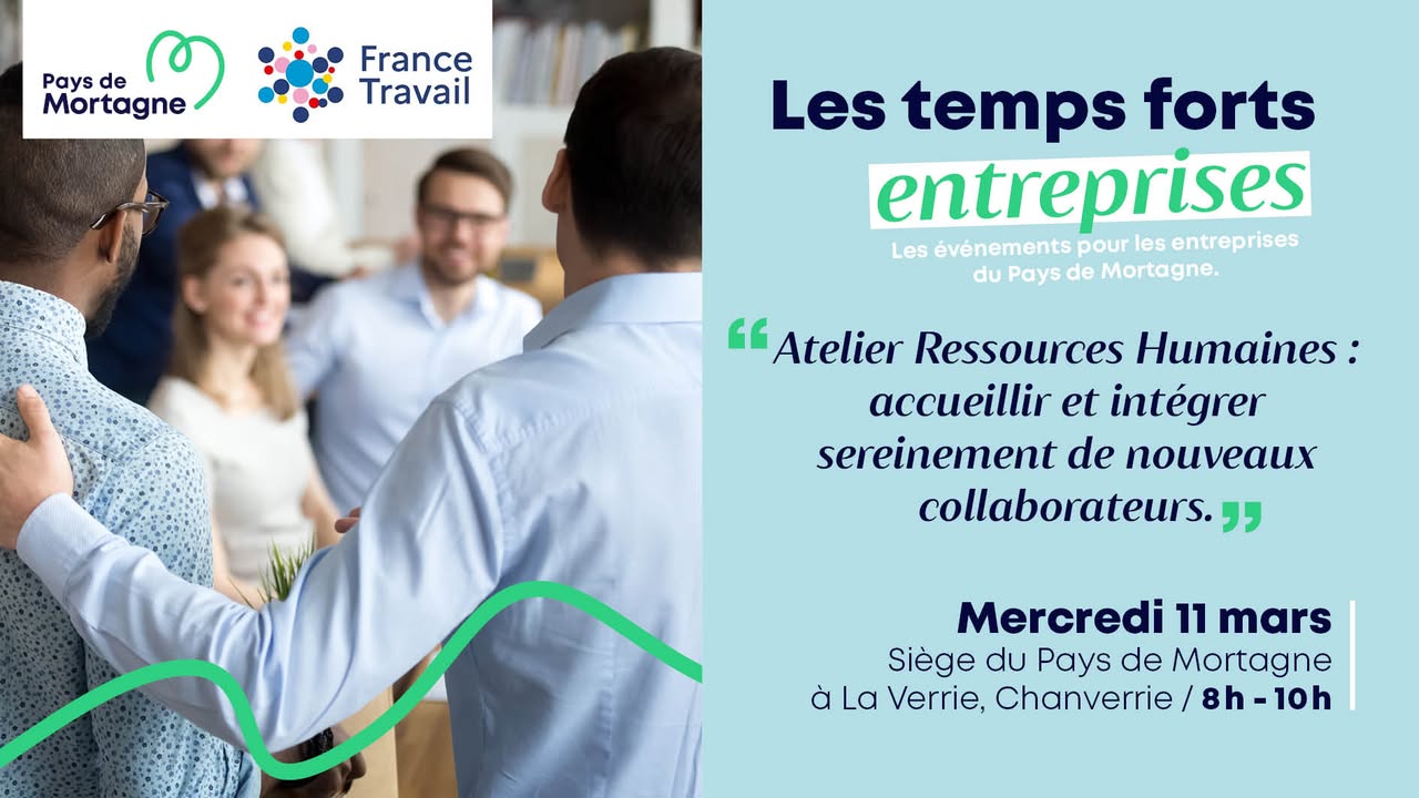 🏭 // LES TEMPS FORTS ENTREPRISES // 𝐑𝐞𝐧𝐜𝐨𝐧𝐭𝐫𝐞 𝐬𝐩𝐞́𝐜𝐢𝐚𝐥𝐞 𝐑𝐞𝐬𝐬𝐨𝐮𝐫𝐜𝐞𝐬 𝐇𝐮𝐦𝐚𝐢𝐧𝐞𝐬 🔎 "𝐴𝑐𝑐𝑢𝑒𝑖𝑙𝑙𝑖𝑟 𝑒𝑡 𝑖𝑛𝑡𝑒́𝑔𝑟𝑒𝑟 𝑙𝑒𝑠 𝑛𝑜𝑢𝑣𝑒𝑎𝑢𝑥 𝑠𝑎𝑙𝑎𝑟𝑖𝑒́𝑠" : c'est le thème du prochain rendez-vous des Temps Forts Entreprises proposé par le Pays de Mortagne en partenariat avec France Travil. 📅 Mercredi 11 mars de 8 h à 10 h 📍 Communauté de Communes du Pays de Mortagne à Chanverrie 🔎 Au programme de cet atelier RH : • Programmer les étapes d’accueil • Organiser le suivi de l’intégration • Sécuriser l’embauche et les départs éventuels 👉 Une opportunité pour échanger entre acteurs économiques et repartir avec des outils concrets.