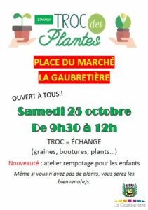 Le traditionnel troc des plantes aura lieu le samedi 25 octobre de 9h30 à 12h, place du Marché.